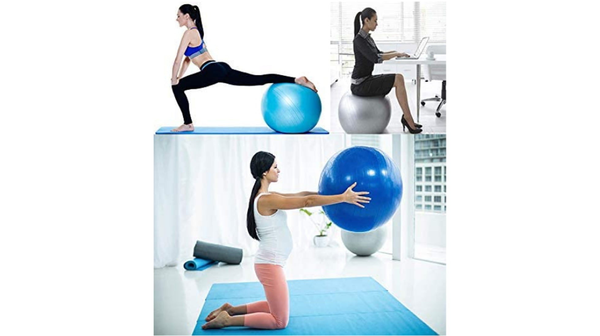 Pelota de Yoga, Pilates, Fitness, Embarazadas, Balón de Ejercicio, Entrenamiento 65 Cm Incluido Bomba de Aire y Set de Bandas Elásticas Musculación para Fitness con …